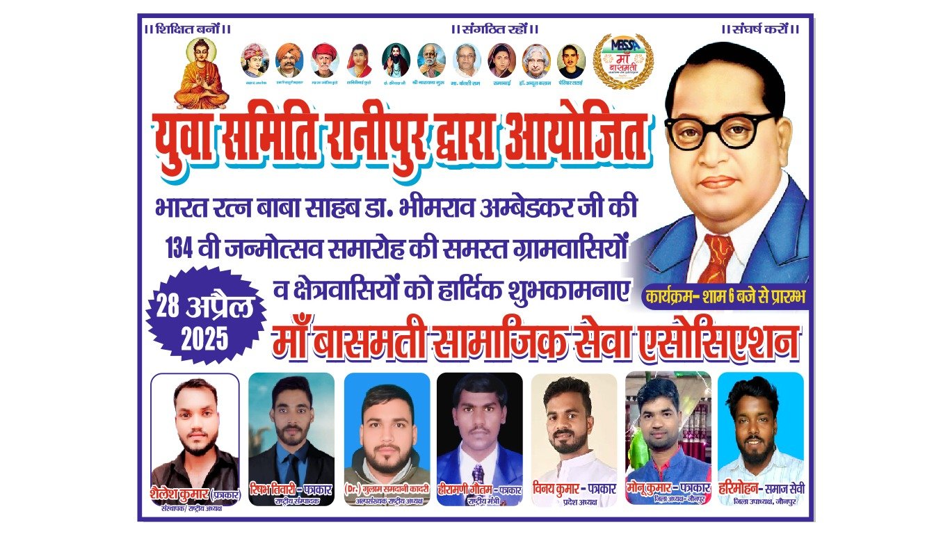🌹 आयोजन सूचना 🌹 माँ बासमती सामाजिक सेवा एसोसिएशन (MBSSA) (पंजीकृत संस्था) 📅 दिनांक : 14 अप्रैल 2025 📍 स्थान : सौरइया विशेष अवसर : भारत रत्न डॉ. भीमराव अंबेडकर जी की जयंती समारोह ✨ कार्यक्रम की मुख्य झलकियाँ : अंबेडकर जी को श्रद्धांजलि एवं माल्यार्पण विचार गोष्ठी एवं सामाजिक न्याय पर परिचर्चा बच्चों के लिए निःशुल्क शिक्षा / जागरूकता कार्यक्रम समाजसेवा एवं प्रेरणादायी वक्तव्य 🙏 आप सभी से विनम्र निवेदन है कि इस ऐतिहासिक अवसर पर अधिक से अधिक संख्या में उपस्थित होकर कार्यक्रम को सफल बनायें। धन्यवाद आपका अपना – MBSSA परिवार