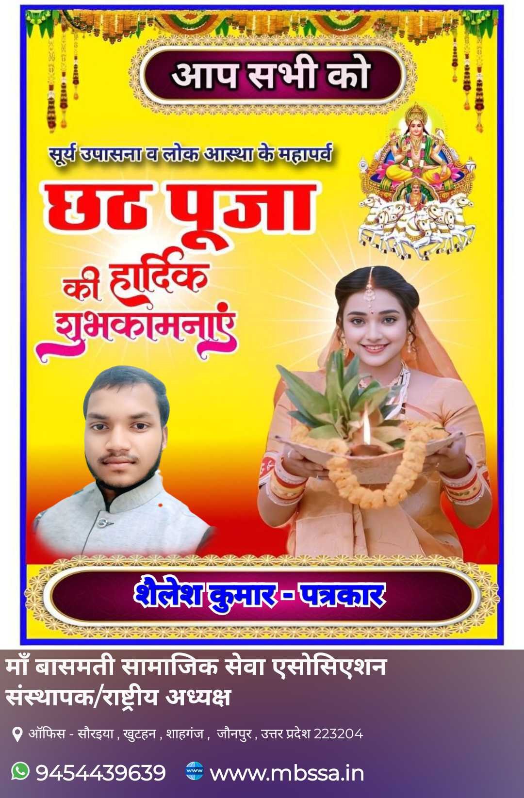 आप सभी सम्मानित ग्रामवासियों को छठ पूजा के पावन अवसर पर हार्दिक शुभकामनाएँ एवं मंगलकामनाएँ। यह पवित्र पर्व लोक आस्था, श्रद्धा एवं सूर्योपासना का प्रतीक है। छठ महापर्व हमें स्वच्छता, संयम, अनुशासन तथा प्रकृति के प्रति सम्मान का संदेश देता है। इस पावन अवसर पर ईश्वर से यही प्रार्थना है कि सभी ग्रामवासी स्वस्थ, समृद्ध एवं सुखी रहें तथा समाज में भाईचारा, एकता एवं सौहार्द का वातावरण बना रहे।