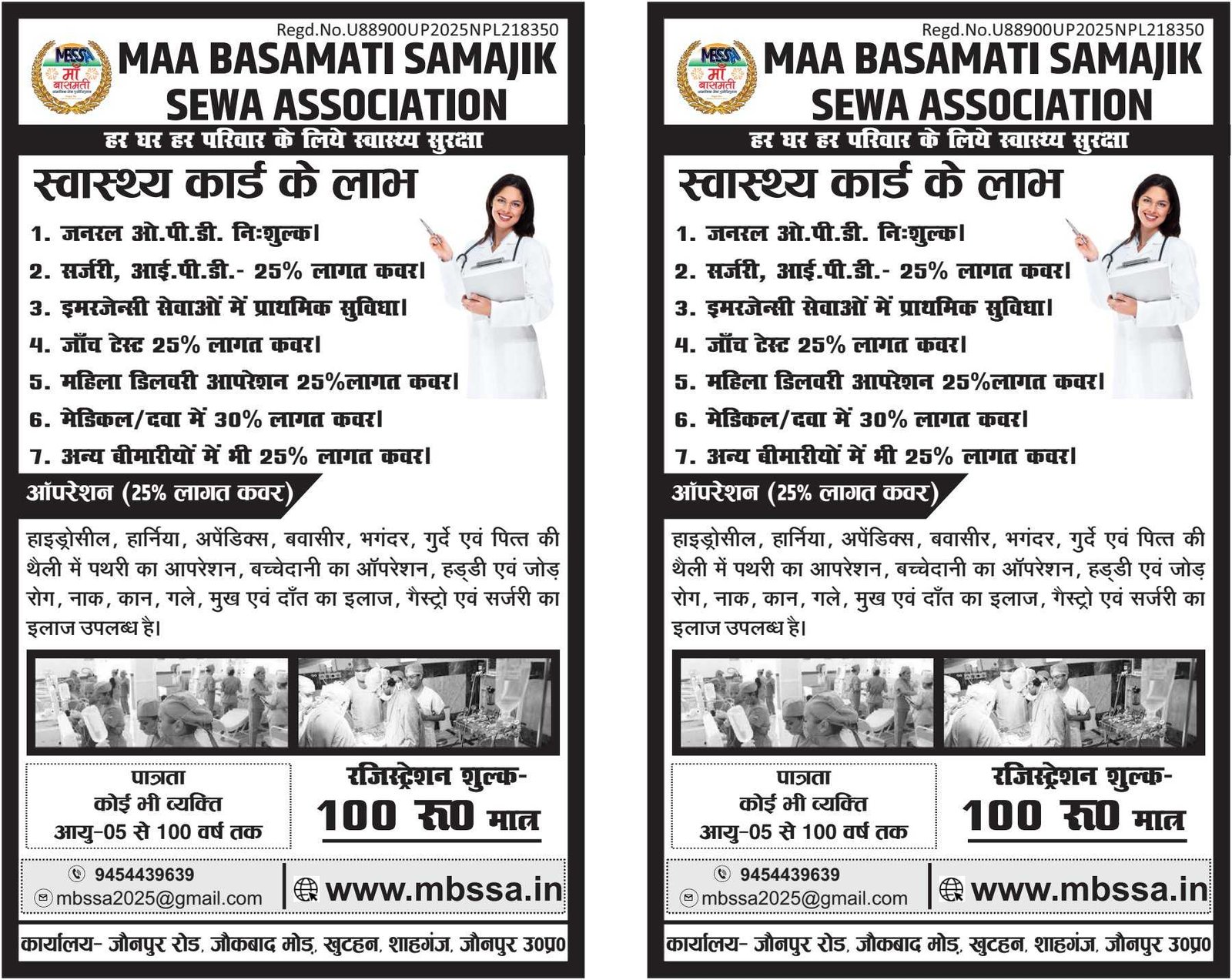 माँ बासमती सामाजिक सेवा एसोसिएशन (MBSSA) द्वारा संचालित “स्वास्थ्य कार्ड अभियान” के अंतर्गत आज दिनांक - 22 अक्टूबर 2025 को कुल 511 से 578 तक सदस्यों का स्वास्थ्य कार्ड पूर्ण हो गया है। यह अभियान समाज के प्रत्येक वर्ग तक स्वास्थ्य सुविधाओं को सुलभ एवं सशक्त रूप से पहुँचाने के उद्देश्य से चलाया जा रहा है। संस्था के पदाधिकारियों एवं कार्यकर्ताओं के निरंतर प्रयास से यह उपलब्धि प्राप्त हुई है। संस्था के राष्ट्रीय अध्यक्ष श्री शैलेश कुमार जी ने सभी सदस्यों को धन्यवाद ज्ञापित करते हुए कहा कि “MBSSA का उद्देश्य समाज के प्रत्येक व्यक्ति को स्वास्थ्य, शिक्षा एवं समान अधिकारों के प्रति जागरूक करना है। यह अभियान आगे भी निरंतर जारी रहेगा ताकि कोई भी व्यक्ति स्वास्थ्य सुविधा से वंचित न रह जाए।” सभी कार्यकर्ताओं से अनुरोध है कि अपने-अपने क्षेत्र में स्वास्थ्य कार्ड अभियान को और अधिक गति प्रदान करें, जिससे समाज के अधिक से अधिक लोग इस योजना का लाभ उठा सकें। माँ बासमती सामाजिक सेवा एसोसिएशन (MBSSA) एक कदम समाज सेवा की ओर www.mbssa.in Youtube - infombssa Instagram - infombssa Fecebook - mbssa अधिक जानकारी के लिए संपर्क करें। मो0- 094544 39639