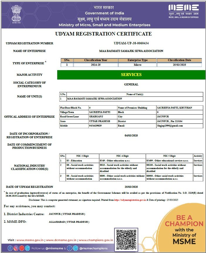 माँ बासमती सामाजिक सेवा एसोसिएशन
